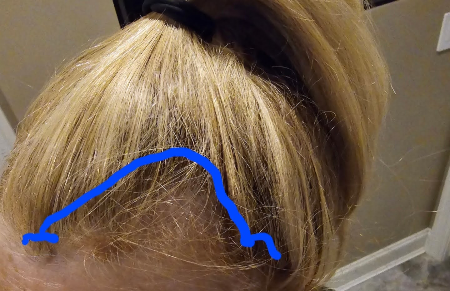 Part your hair and find the thinnest areas.
